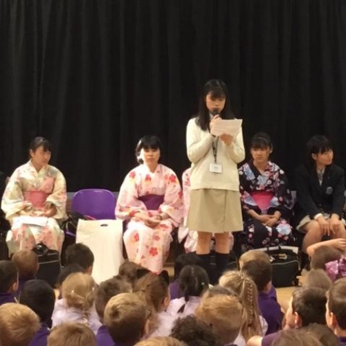 For the last ten years the Vine Inter Church Primary School has played host to students from Tsuchiura Nihon University Secondary School. It has been a fantastic opportunity to share learning, languages and different cultures. This year the Japanese students led a whole school worship sharing information about the fantastic country of Japan. We learnt about the landscape, dress, foods, music, entertainment, language and what their school is like. The students then held a quiz for the whole school. We were really impressed with how they spoke clearly in English; they explained they had been practising very hard.
